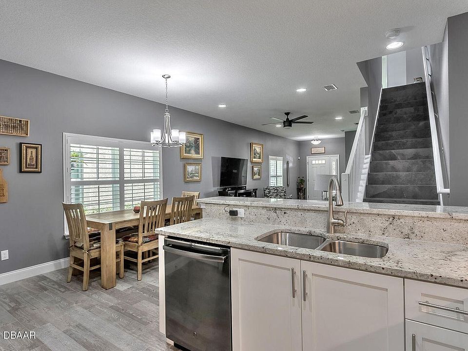 Tiled stairsCustom wood look tileClose to the poolTiled countertop wallStainless appliancesCustom backsplashCustom barn door