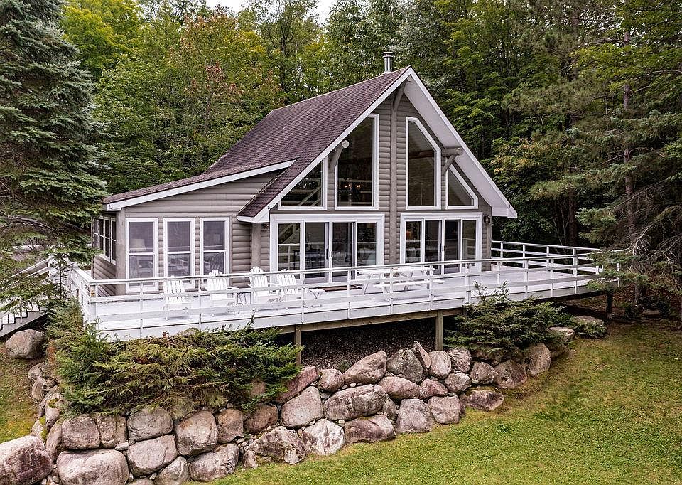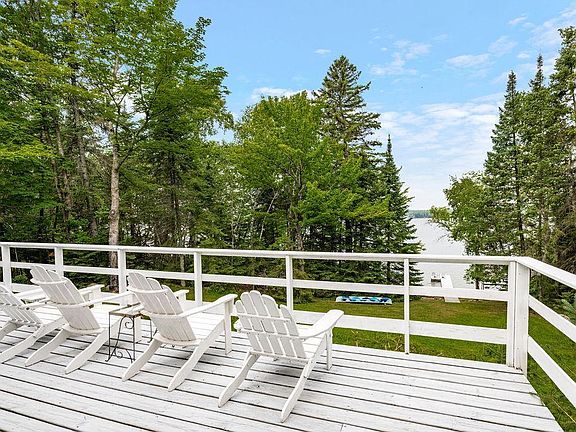 A heavenly haven on the most desirable location on Pokegama Lake. This cabin is one of a kind in the north woods. A year round cabin that is serenely appointed to transport you to a peaceful retreat or stunning year round home. Down a private driveway, this 2 bedroom, 1.5 bath home has a beautiful sleeping loft that allows you to see the lake when you wake up in the morning. Downstairs there is a cozy bedroom and bath. An open floorplan includes a cook's kitchen with Wolf range, farmer's sink and ample cooking and eating space, dining area, living room with a gorgeous wood burning fireplace, as well as a comfy separate media alcove. A wraparound deck overlooking the lake, perfect for entertaining. There is a bunkhouse on the lake where you can fall asleep to the waves lapping on the shore after taking a sauna and swim. The house is decorated from Design Within Reach, Ligne-Roset, Arte de Mexico and thoughtfully curated vintage pieces. It is truly one of the most special places you can find.