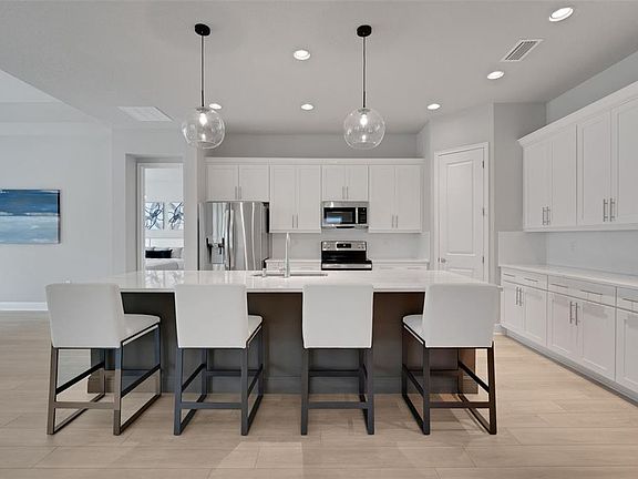 CONTEMPORARY. IMMACULATE. MOVE IN READY. This 2022 ICI home in Lake Jovita Golf and Country Club shows like a model and blends modern luxury with everyday ease. Escape the traffic and enjoy a newer build tucked inside a beautifully established community. Soaring tray ceilings and elegant lighting set the stage for a bright, modern open layout. Triple sliders frame golf course views, while the chef’s kitchen stuns with quartz counters, stainless steel appliances, soft close cabinetry, under cabinet lighting, and a 10 ft island built for entertaining. Your spacious primary suite is a peaceful retreat with a picture window overlooking the fairway and a spa like en-suite bath. Outside, unwind on the extended covered patio with peaceful views of the tee box. This home is packed with premium upgrades, including FULL IMPACT WINDOWS AND DOORS for energy efficiency, lower insurance costs, and added peace of mind, plus professionally designed closet systems, Sparc Tek garage flooring, overhead storage, and an EV charger. The low $86/month HOA includes Blue Stream Fiber internet, 24/7 guard gated entry, pickleball courts, and scenic walking trails, with OPTIONAL golf and country club memberships for access to the championship course, tennis courts, resort style pool, clubhouse, and on-site restaurant.