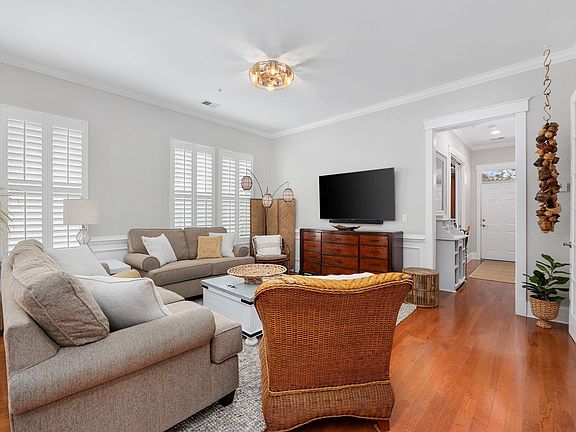Welcome to 3452 Baldwin Lane in Sweetgrass Square in The Market Common! This stunning 4-bedroom, 2.5-bathroom home (with an additional office) perfectly blends comfort, charm, and convenience—all just a golf cart ride away from the beach, State Park, airport, and all the shops, dining, and entertainment that The Market Common offers. The thoughtfully designed layout includes a first-floor owner’s suite with a tray ceiling, walk-in closet, and updated lighting and vanity mirrors. Upstairs, the spacious bonus room (considered the 4th bedroom) features its own bathroom and abundant walk-in attic storage. Custom plantation shutters add elegance throughout this home. Enjoy your mornings on the front porch or unwind after a busy day in the private hot tub area, complete with a SunSetter retractable awning, outdoor shower, pavers, river rock... all low maintenance living. The exterior was freshly painted and accented with professional up-lighting for added curb appeal. Inside, the kitchen shines with stainless steel appliances, granite countertops, tile backsplash, and a breakfast bar or dining nook large enough for a sizable table. You can also enjoy meals in the side patio garden area for an outdoor dining experience. There are two more bedrooms on the first floor toward the front of the home that share a full bathroom with a tub/shower combination. Additional features include a mini split system with heat/AC in garage, insulated garage door, upper and lower garage cabinet storage and countertops, hurricane shutters for the whole house, and plenty of storage. Residents also have the option to join the nearby Market Common Amenity Center (located behind Barnes & Noble) which offers a resort-style lazy river, pool, fitness center, and plenty of green space with hammocks. This home truly offers it all—modern updates, low-maintenance living, and a prime Market Common location. Schedule your showing today!!