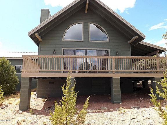 Stunning 3 Bedroom, 2 Bathroom cabin in High Country Pines. Beautifully treed .54 acre homesite that backs to the greenbelt, located at the end of a quiet cul-de-sac and is walking distance to the National Forest. This home boasts a great room design with a wood burning rock faced fireplace and hearth, ETS (high efficiency) heating, wood flooring, knotty pine ceilings, exposed wood beams, ceiling fans, spacious master suite with a sitting area and walk-in closet and the cabin is wired for a security system. The exterior features an extended full length front deck that allows for forever tree-top panoramic views. Also, a metal roof, low maintenance Masonite siding, and a 2.5 car garage. This is a perfect get-away cabin. High Country Pines is located in the Rim community of Heber AZ.