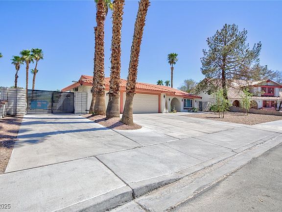 Experience Original Vegas! Beautiful 1 story home on a stunning 1/4+ acre lot w/sparkling 10ft deep pool! 3 car garage & RV Parking! Highly upgraded: tile/granite counter tops, custom cabinets, recessed lighting, French doors, custom paint, gas fireplace, ceiling fans, reverse osmosis and more! Amazing hidden backyard with professional landscaping, grass yard & covered patio! Appliances included! Garage has a studio with a bathroom without permits. OPEN HOUSE SATURDAY 9/20/2025 11-2PM