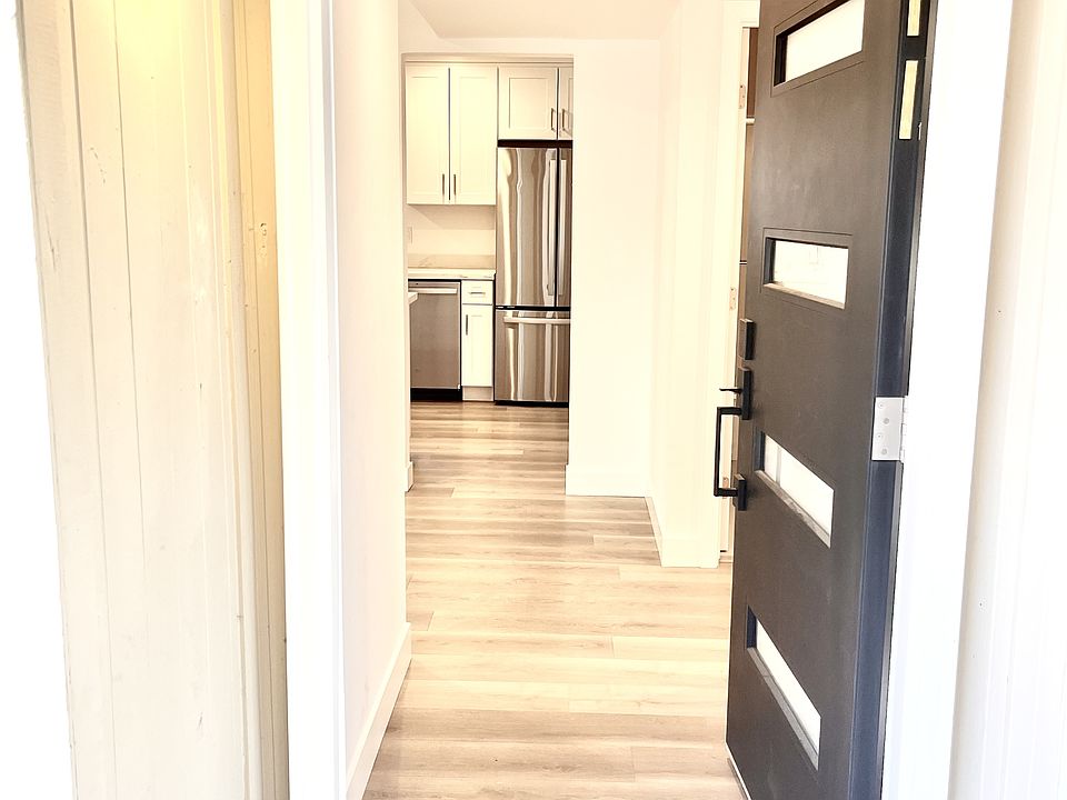 Remodeled 3 bedroom 2 bathroom duplex walking distance to Kaiser and Apple. Washer Dryer inside, garage detached for storage. Remodeled, Duplex with 1 car garage for storage, decorational fireplace, private patio. Inside laundry washer/dryer. Glass top electric stainless freestanding oven with micro-hood, dishwasher all granite counters, ceiling fans, dual pane windows, window coverings, luxury vinyl floors throughout, ceiling fans throughout. Close to Kaiser, Homestead/Lawrence. Central location. - Apple Loop - 3.9 miles - Kaiser Hospital - 1 mile - Starbucks, McDonalds, 7-Eleven, JBox, shopping walking