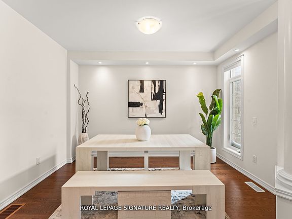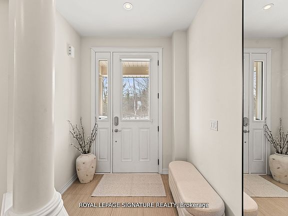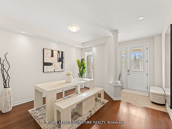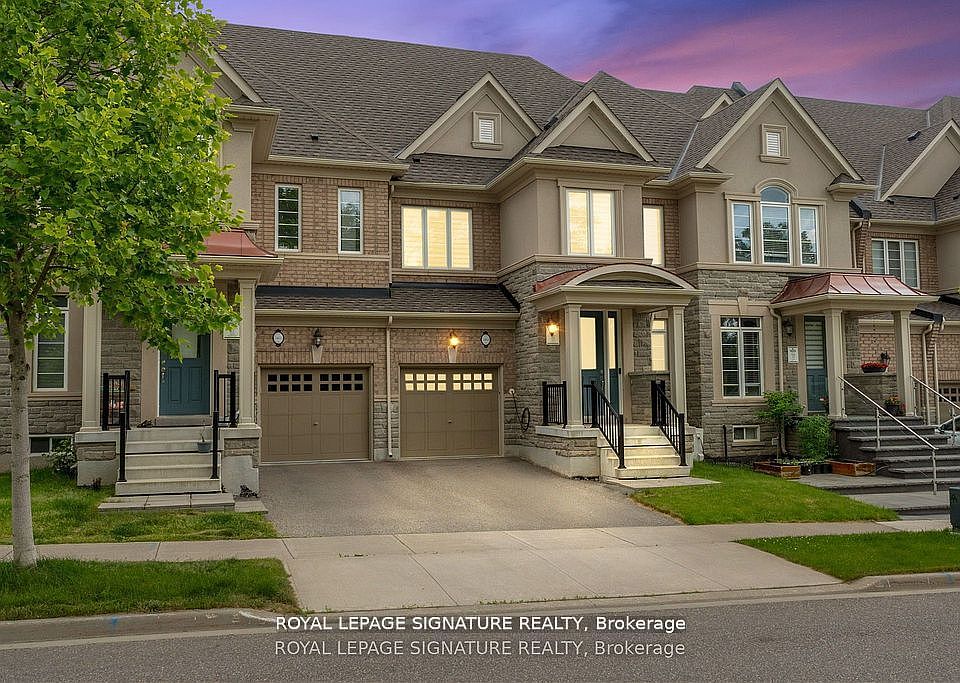 Welcome to 3453 Fourth Line by Rosehaven Homes, your perfect 3-bedroom 3-bath freehold townhome located in Oakville's most desired Glenorchy community. Step inside to high 9' ceilings and elegant hardwood floors on the main floor, and pot lights throughout both levels, leading outdoors to a fully-fenced backyard with manicured lawn, wood deck and gas BBQ line, perfect for gatherings. The open-concept kitchen features modern appliances, ample cabinet space with breakfast bar, quartz countertops & gas range. A living room complete with a gas fireplace. The second floor includes 3 spacious bedrooms, with the master suite boasting a walk-in closet and a luxurious 5-piece ensuite. A large guest bathroom and a conveniently located laundry room on the second level. Additional upgrades include EV charger, central vacuum, and owned hot water tank. Located in Oakville's Glenorchy community, this home is near top-rated schools, nature trails, golf courses, newly renovated sports complex, hospital and Highway 407.