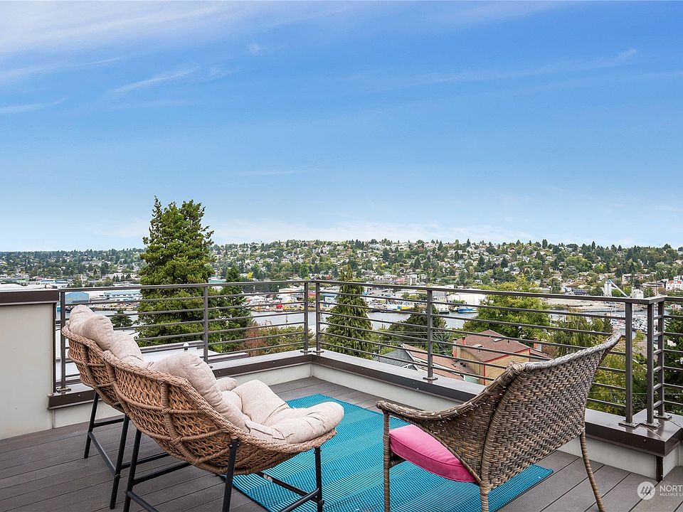 Luxurious stand-alone 4 Bdrm home in prime Queen Anne! Incredible 600 sf rooftop deck with unobstructed 360° views of Canal, Cascades & City! 2Bds/1Bth on entry-level w/access to hot tub & garden. Open concept main floor features floor to ceiling windows, gas frpl & hardwoods. Chef’s kitchen with SS appliances, gas range, island & walk-in pantry. Upstairs features an opulent primary suite with stunning views, a spa-like bath & spacious walk-in closet. 4th Bdrm w/impressive views & convenient laundry. You own the land w/garden on all sides, alley access & off street parking. No HOA! North Queen Anne, convenient to Ballard, Fremont, SPU Campus & Downtown. Located near multiple bus and bike paths. Close to shopping, breweries & restaurants.
