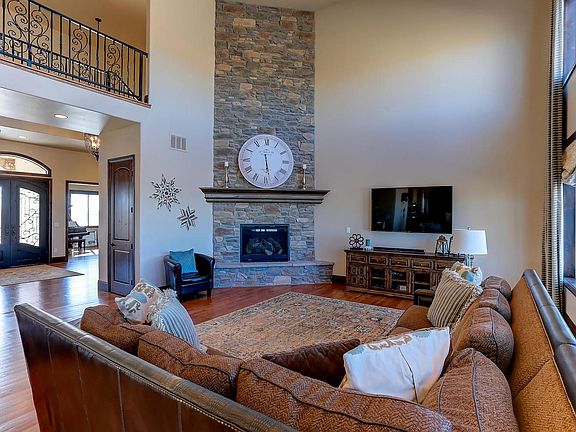 This breathtaking home is the best of Colorado custom living, ideally situated on five acres with panoramic mountain views! Exquisite details abound from the custom iron work at the doors to the millwork and carefully selected granite and stone inside. Beyond the dramatic entry, this grand floorplan is highlighted by the vaulted great room with stacked stone fireplace and views for miles. The stunning gourmet kitchen boasts rich two tone cabinets and high end appliances including dual dishwashers and gas cooktop. Relax in your upstairs master suite and enjoy sunsets from your private concrete patio. All bedrooms have private baths, including the main floor guest suite/second master with stone fireplace. Spend time entertaining in the beautifully finished walk-out basement with wet bar and wine cellar, media and game areas or on the elevated deck above. This is the home you've been dreaming of, just 10 minutes from Southlands shopping and restaurants.