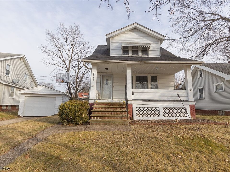 This lovely, 1452 square foot colonial includes a welcoming large covered front porch, partially finished basement and central air conditioning. Upon entering the home you are immediately greeted by an open living room with a large picture window, arched room openings, hardwood flooring and plenty of natural light. The kitchen has beautiful wood cabinetry and a pantry. Upstairs there are two comfortable bedrooms with ceiling fans with a shared full bathroom with linen closet. Additional living space is found in the partially finished basement with a recreation room, additional storage and a laundry area. The detached one car garage in the backyard is convenient for maintaining the yard. The roof is only 7 years old. Schedule your private showing today before it's gone!