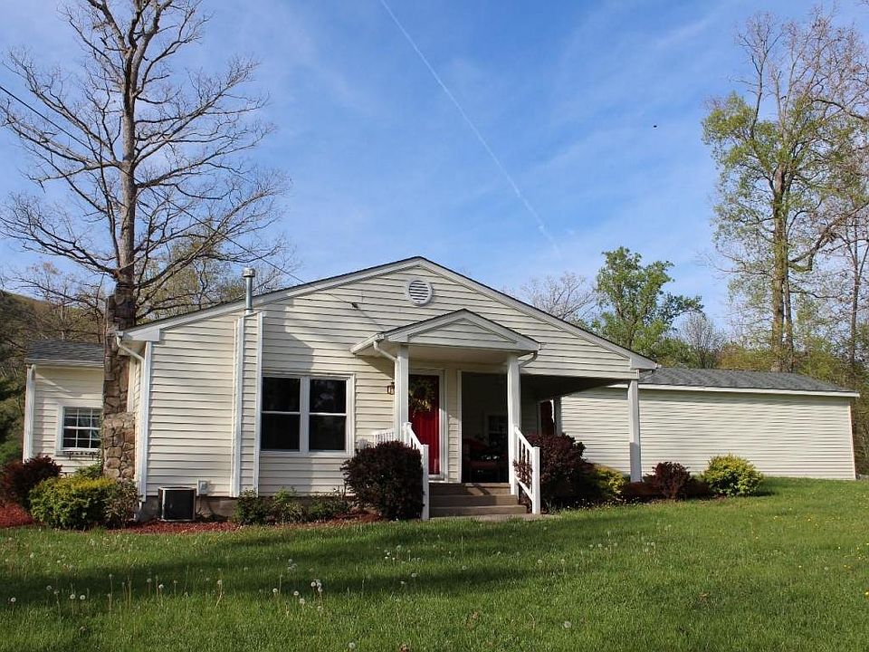 Charming remodeled/updated ranch on half an acre near Carvins Cove features replacement windows, great room w/gas logs, built-ins, cathedral ceiling, wood and tile flooring, tile counters with beautiful backsplash, water softener, wood stove, detached garage, storage shed, quiet and private setting. Shared well, private septic.