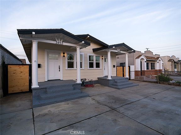 Welcome to 3453 and 3455 Estrada Street, an exquisitely remodeled and fully reimagined duplex home in the heart of the Boyle Heights/Los Angeles area, offering a rare blend of modern luxury, thoughtful design, and unbeatable location. This beautifully updated duplex features one spacious bedroom and one full bathroom in each unit, totaling 1,248 square feet of living space. One unit includes a bonus room — perfect for an office, playroom, or guest room. Situated on a generous 4,200 square foot lot just a few blocks from Lorena and Whittier Boulevard, you’ll be within easy walking distance to Boyle Heights’ trendiest restaurants, vibrant coffee shops, boutique shopping, and popular parks. The interior is adorned with brand-new wide-plank flooring, fresh interior paint, and abundant natural light. The fully renovated kitchens feature all-new high-end appliances including a gas range, oven, microwave, and garbage disposal. Quartz countertops, custom cabinetry, and recessed in-ceiling lighting provide a modern yet inviting aesthetic. Both bathrooms have been completely remodeled with tasteful, contemporary finishes. Additional upgrades include brand-new AC and heating, new electrical, and new double-pane windows. Each unit also includes a laundry area for stackable washer and dryer for ultimate convenience. The exterior has been transformed with new paint, a new roof, modern metal and wood privacy gates, and newly poured concrete steps and driveway providing extra parking. The front gate opens to a long multi-car driveway offering secure off-street parking. A brand-new detached two-car garage features insulated walls and a new garage door, offering potential for an ADU conversion. The backyard is a private retreat designed for both relaxation and entertaining, complete with new landscaping. This turnkey duplex in one of Los Angeles’ most desirable and growing neighborhoods is a must-see.