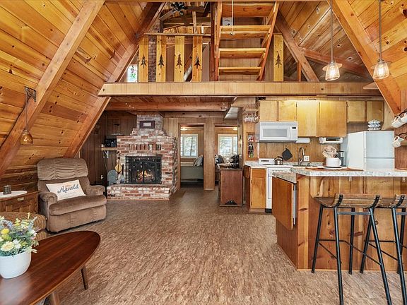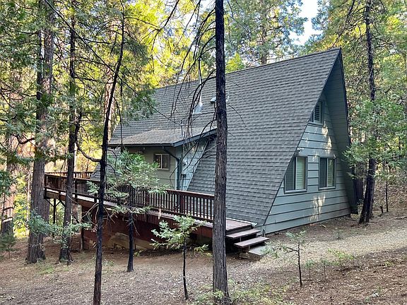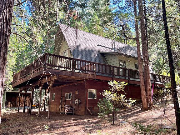 This is the Lakemont Pines A Frame cabin that you have been waiting for! Move right in, comes fully furnished! This gem also includes a generator, snowblower, log splitter, appliances, and a full shed of wood for the fireplace. Private, quiet, and secluded location offers up relaxing moments with forest views from the deck and the sounds of a seasonal creek. As you enter this cute cabin you will be wowed by the use of wood, the vaulted ceilings and the Cabin Feel. On the main level is the kitchen, living room, dining area, two access points to the wrap around deck, two bedrooms, and a full bath. Upstairs is a den area, a partial bath, and a loft area that is currently being utilized as a third bedroom. Easily sleeps 8 to 10. The basement provides convenient laundry area, workshop space, and plenty of storage room for all the extras including your toys. Improvements include deck replacement, double paned windows throughout most of the cabin, and shutter style window coverings. Additional upgrades include kitchen countertops, cabinets, sink. Bathroom upgrades as well. Flooring replaced in parts of the cabin. Most lighting fixtures updated. Exterior completely painted just a few years ago. Enjoy Lakemont Pines amenities including access to the beautiful private lake. Experience the mountains and all they have to offer. Close to Bear Valley Skiing, Calaveras Big Trees State Park, the Arnold Rim Trail, high alpine lakes, downtown Murphys for shops, dining, and winetasting. So much to do! First time this property has been on the market in decades. Pride of ownership abounds.