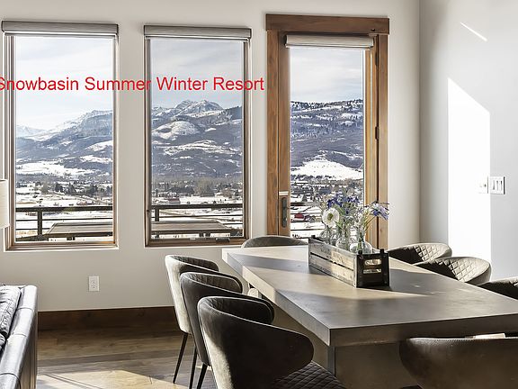 Stunning Hillside Retreat with Panoramic Valley Views Nestled along the hillside, this modern townhome offers spectacular, views of Pineview Lake, Nordic Valley Ski Resort and Snowbasin Summer and Winter Resort. The Ridge community at Wolf Creek Resort allows for nightly rentals. Unit 504 is located a short walk to a Powder Mountain pick-up and drop-off location. Unit 504 combines convenience with stunning natural beauty. The modern exterior is complemented by HOA maintained landscaping, setting the stage for the luxurious interior. Inside, open-concept layout featuring vaulted ceilings, upgraded finishes, and a stone fireplace that anchors the living area. The full-length wall of windows floods the home with natural light and frames the breathtaking valley views, perfect for enjoying the magnificent sunsets. A private elevated deck allows for seamless indoor-outdoor living, while radiant-heated flooring on the lower level adds an extra layer of comfort. The kitchen is outfitted with quartz countertops and state of the art appliances, making it an ideal space for entertaining. The main level also features a large Master suite with a walk-in closet and a spa-like bath. Downstairs, the lower level offers three additional bedrooms and three bathrooms, plus a spacious family room that opens onto a private ground-level porch with a hot tub-perfect for relaxing after a day on the slopes. A large bonus room in the lower level provides endless possibilities for a theater room, game room, or additional living space. As a owner you'll enjoy the HOA pool and large hot tub, ideal for unwinding year-round. With hiking, biking, skiing, golfing, and endless outdoor activities at your doorstep, this townhome is a perfect home base for your adventures. This property is being sold fully furnished and is currently in an established rental pool with a proven history, offering great potential for short-term rental income. Whether you're looking for a personal mountain getaway or an investment property, this stunning townhome offers the best of both worlds. ALL SHOWINGS REQUIRE AN APPOINTMENT. HOME IS IN A RENTAL POOL.