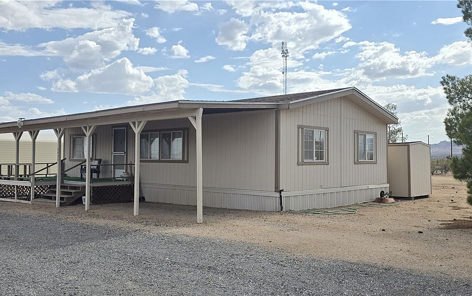 Welcome to this charming and well-maintained 1996 manufactured home located in the peaceful community of Golden Valley, Arizona. This spacious 2-bedroom, 2-bath home offers comfortable living with plenty of room to grow, including a large bonus room that s perfect as a home office, family room, craft space, or whatever your heart desires! Start your day with a cup of coffee while watching the sunrise from the covered front deck, soaking in the quiet surroundings. Inside, you ll find a cozy living area, a dedicated indoor laundry space, and a walk-in closet in the primary bedroom for all your storage needs. The home has been thoughtfully updated with replumbing completed just before listing, a new HVAC system installed in 2016, and a roof redone in 2019, offering peace of mind for years to come. Enjoy the outdoors with a partially fenced yard and take advantage of the bonus shed, which is tightly anchored for extra stability and storage. Located just off paved Chino Road, this property offers easy access while still providing a peaceful, rural setting. Whether you're looking for a full-time residence or a getaway this home has endless potential.