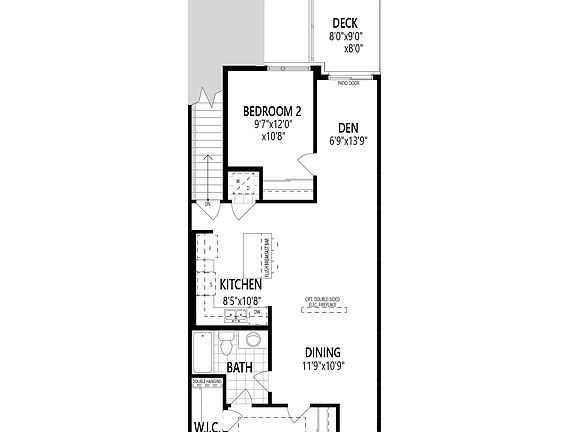 The Foxglove features a welcoming front porch and foyer opening into the living space. The master bedroom with a walk-in closet and the main bath are located just off to the side of the foyer. The open-concept living space features a functional L-shaped kitchen overlooking the living and dining room. Enjoy a cup of coffee or share a meal at the breakfast bar. The separate den at the end of the hallway has patio doors that provide ample natural light and leads to the deck, that features a privacy screen. Bedroom 2 in the corner has ample closet space and completes the floor. The unfinished basement has a multitude of personalization options, such as adding a complete 3rd bedroom with a bath and the inclusion of a laundry room, great room or recreation room.