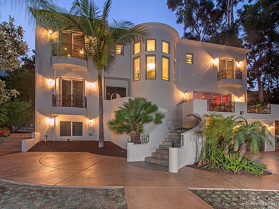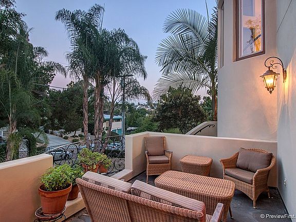 Gorgeous Mediterranean Villa located on a quiet canyon cul-de-sac in South Mission Hills awaits you. This home has custom ironwork artistry in a dramatic fence surrounding the property as well as the balconies and interiors. Grand entrance with custom double doors opens to a spacious formal living room and dining area which overlook lush tropical greenery and bamboo in the back canyon that feels more like a Mediterranean country estate than a home that’s only 1.8 miles to downtown San Diego. Other great features include 5 sizeable bedrooms, an office, and a theater room. Large gourmet kitchen is perfect for entertaining with quality features including a large kitchen island with seating for 6, Kitchenaid stainless steel appliances with restaurant-quality cooktop. The large backyard patio is completely tiled with slate, has a tranquil water feature and stunning fireplace. Other home features include tall ceilings, dramatic archways, large windows, and newly planted drought-resistant Dymondia grass which never needs mowing. Come and experience the elegance and majesty of this estate.