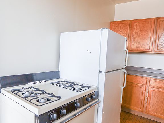 This 2 bedroom 1 bathroom apartment features separate living and dining room, nice hardwood floors. The kitchen as lots of counter space and updated white appliances with dishwasher. One queen size bedrooms