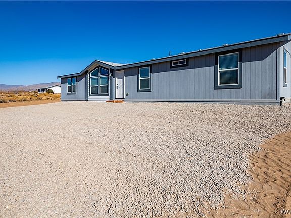 Back on market due to Buyer breach. This ground set 1792 Sq. Ft home features 4 bedrooms and 2 bathrooms and sits on over 1 acre of agricultural land just north of Highway 68. Horn Road is a public maintained road and the location of this home in Golden Valley is minutes from Laughlin or Kingman. This home was a model home at a mobile home company sales office and was built in 2021. Since it was a model home it was fully upgraded and is in excellent condition. Important features include a split floor plan with a private master that has a walk in closet, two vanities and a large walk in shower. The open kitchen views into the living room and creates an open feel that is perfect for entertaining. The upgraded cabinets provide a ton of space for storage and the breakfast bar and island add a perfect location for entertaining. The AC is brand new and the heater has hardly been used and is propane. This home comes with a fridge and microwave and dishwasher. A warranty is available for this home and is transferable. The septic is brand new and has a discharge authorization. Property is on county water service. Seller is licensed stand in the state of AZ