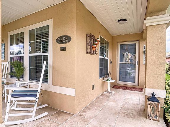 Welcome to your dream home in the desirable Savona South community of Venetian Bay! This charming 3-bedroom, 2-bathroom single-story home offers comfort, style, and modern conveniences, all set on a spacious 6,600 sq ft lot in beautiful New Smyrna Beach. Built in 2011, this residence boasts an open-concept layout with soaring ceilings that create a bright, airy atmosphere throughout the living spaces. The well-appointed kitchen features solid wood cabinets and flows seamlessly into the family room—perfect for entertaining and everyday living. Additional highlights include a dedicated laundry room with washer and dryer, a 5-year warranty on the refrigerator, and a 10-year warranty on the AC, which is serviced every six months for your peace of mind. Relax outdoors on the large wraparound front porch or enjoy quiet evenings in the screened lanai overlooking lush, mature landscaping. The property is adorned with fruit trees, including mango, avocado, lemon, and grapefruit, adding a touch of nature to your backyard oasis. Practical exterior features include hurricane shutters, rain gutters, a full irrigation system, fenced yard and a convenient rear-entry garage accessed via a private service road. Inside, you’ll find thoughtful details such as high ceilings, window treatments, ceiling fans, and a kitchen/family room combo designed for function and flow. The spacious master suite is located on the main floor for convenience. Located in the sought-after Venetian Bay community, this home combines modern living with Florida charm and access to incredible neighborhood amenities. Enjoy golf, walking trails, and more—all just minutes from the beach, shopping, and dining. Grand opening - new Tiki Bar and Pool for $55 a month! Experience Florida living at its finest in this charming Venetian Bay home, where comfort, convenience, and community come together.