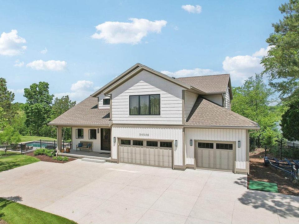 Perched in a private natural setting on spring-fed Upper Nashotah lake, this idyllic family retreat defines the quintessential summer camp. Explore over 300 feet of sparkling water frontage, tastefully designed gardens and a burgeoning butterfly nursery. An expansive yard and heated pool feature stunning waterfront views. Three levels of practical lakeside living await inside. Master suite, thoughtfully located on the main floor, features a private morning deck, custom closet, and personal lakeside views. Family and guests can spread out here - three bedrooms and two baths upstairs, two bedrooms and two baths down. Kid-approved lounge space upstairs, private theater room down. Design details abound - built-in bunks, water views from all six bedrooms, shiplap galore.