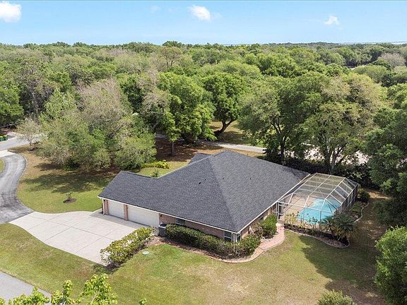 Imagine waking up every morning in this custom built 4 bedroom 2 bathroom split plan, POOL home. This home sits on 1.3 acres and is located on one of the most desirable streets in Mims. Formal living and dining room with vaulted ceilings. Kitchen is open to the family room with vaulted ceilings, granite countertops, kitchen island for extra prep space and maple cabinets. Reverse osmosis drinking water. Primary suite boasts a 14x12 bathroom, make up station, linen closet, jetted tub, walk- in shower, and a his and her vanity. French doors lead to pool area. Three guest bedrooms with large closets. Large inside laundry with basin sink.Roof replaced 2024, a/c 2018. Workshop is 11.5x24ft. 36''in doors for handicap accessibility. Plumbing for 3rd bathroom in garage. Large pool with bench seating. Well with water softener. Security system. Automatic sprinklers.Gorgeous wooded lot.