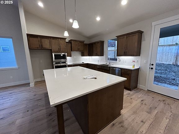 March Completion!!! Sales office open daily 11am-5pm! Check in with agent on site! Gorgeous gourmet kitchen features oversized island, quartz countertops, pantry, SS appliances! Expansive great room with vaulted ceilings, fireplace and laminate flooring! Welcome to your dream home in the desirable East Mountain Community! This thoughtfully laid-out 3-bedroom, 2-bathroom haven is designed for comfort, convenience, and style. Mudroom entry takes you upstairs where all of your living is on one level. Corner lot with large 3 car garage! Conveniently located right off the freeway and just 10 mins to U of O! Photos of similar home. Finishes vary
