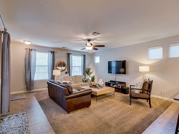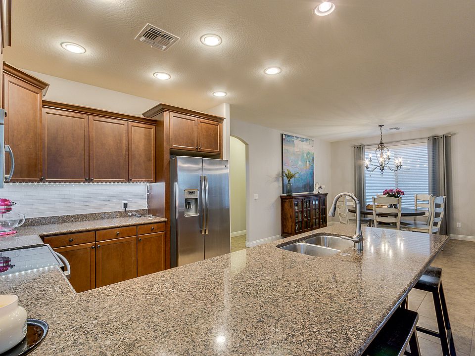 This is one of THE best layouts with so much space and lots of room for storage. Nothing in this home is small. Downstairs you walk into the nice open livingroom area, kitchen with nice granite counters, and dining area. You will also find a good sized closet, half bath, and extra large pantry. Upstairs you have a loft, huge master bedroom with en suite, 2 secondary bedrooms, and a second bathroom. The turf and pavers on the patio are only 2 years old. Walk down the shaded street to the nearby community pool, splash pad, or large grassy area. Shops and restaurants are also close enough to walk or bike to. Quick access to the 202 and plenty of Gilbert's best shopping.