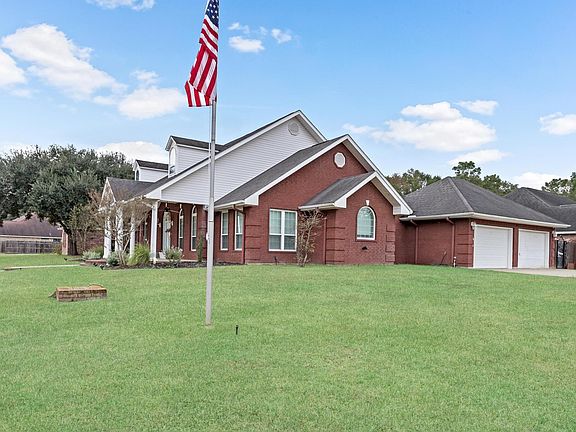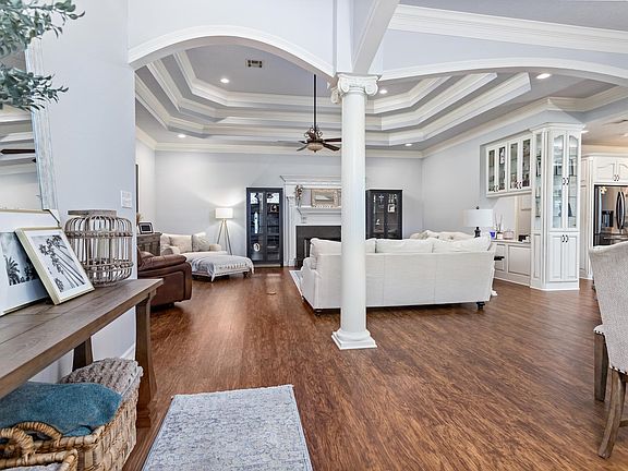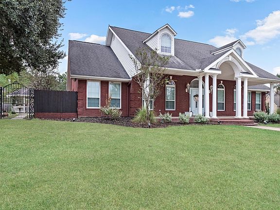 Stunning 2,552 sqft home with 3 beds, 2.5 baths, 3-car garage (decked for storage), and bonus room. Luxury vinyl wood floors and abundant natural light throughout. Highlights include soaring 13'-10' ceilings, crown moulding, tray ceiling, formal dining room, & custom built-ins. The spacious 18x23 living room with a cozy fireplace flows seamlessly into the dining area, breakfast nook, and kitchen, featuring custom cabinetry, quartz & leather-wrapped granite countertops, an island, stovetop, built-in oven, pantry, & desk area. Down the hall, two bedrooms (11.7x11.6 & 10.8x13) share a full bath. The en-suite master boasts a spa-like bath with a soaking tub, separate shower, and dual walk-in closets (12x13). Inside utility room. The (20x10) bonus room is ideal for an office or craft room. Step into your fenced backyard oasis with a sprinkler system, (27x16) covered patio, gazebo, & versatile 10x10 building—perfect for workouts, crafts, or a man cave. Convenient access to I-10. A MUST-SEE!