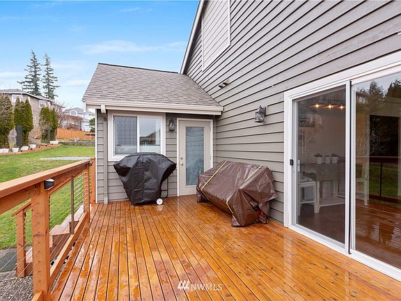 This is an absolute gem! Barkley Hill rambler style home, situated near the top of the hill on a dead end street, with clear bay views & southern exposure from the living room and views of the Cascades from the back deck. Home includes all new flooring and lighting, granite countertops & stone back splash, newer appliances, refinished cabinetry throughout, a spa-like master bathroom remodeled with shiplap, sliding barn door & a tall glass shower door. Upgraded low maintenance landscaping and a natural cedar deck. New Joostens Roof in 2021. This home is within a few steps to the interurban trail system & walking distance to Barkley Village. Don't miss it!