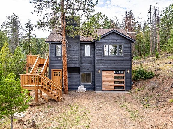 Welcome to 34557 Forest Estates Road, a stunning sanctuary nestled among the towering pines and breathtaking mountain views of Evergreen Colorado. This fully renovated mountain modern home combines rustic warmth with contemporary design creating a space that feels both stylish and inviting. The exterior’s rich dark siding contrasts beautifully with natural wood trim giving the home a striking presence that blends seamlessly with its surroundings. Step inside to soaring vaulted ceilings, expansive windows and a sun-filled open floor plan that perfectly frames the stunning forest views. The spacious living area features a modern gas fireplace that sets the tone for cozy evenings after a day of exploring the scenic trails. The gorgeous kitchen is a true showpiece with quartz countertops, custom cabinetry, stainless steel appliances and large matte black pendant lighting over an oversized island. The bathrooms are designed with unique tilework, warm finishes and thoughtful details throughout. The primary suite offers a peaceful retreat with dual sinks and a luxurious soaking tub surrounded by elegant finishes. Every corner of the home feels fresh and refined, with new flooring, and a soft neutral palette that enhances the natural light. Step out onto the large deck and take in the endless views of pine-covered hills and Colorado’s crisp mountain air. It’s the perfect spot for morning coffee, sunset dinners, or stargazing at night. This home offers the best of both worlds: privacy and tranquility while being just minutes from downtown Evergreen’s charming shops, restaurants, and outdoor adventures. And with a brand-new 18K septic tank, you’ll enjoy the confidence of modern updates and long-term peace of mind. Whether you’re seeking a full-time home or a weekend getaway, this move-in-ready masterpiece delivers everything Colorado living should be fresh mountain air, timeless design, and endless natural beauty right outside your door. Come see it today!