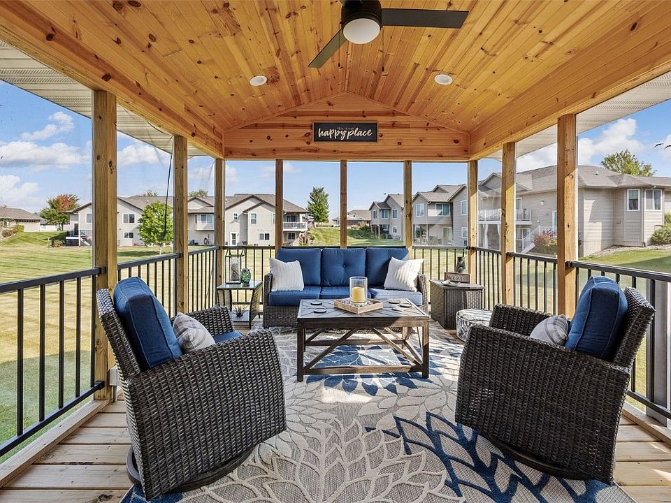 Welcome to this light-filled, premium end-unit condominium in the Villas at Prairie Knolls. This home offers a truly carefree, low-maintenance lifestyle with a smart, comfortable layout. The main living area features a vaulted ceiling, an open great room and dining space, main-floor laundry, double sinks in the primary bathroom, and a spacious walk-in closet. A beautiful 3-season room (added in 2022) and rear deck overlook a large lot and green space, giving you added privacy and peaceful views. The finished lower level expands your living area with large daylight windows, a full bathroom, and a generous additional bedroom. Additional features include a 2-car garage with keypad access, a new roof installed in October 2020, and an allowance for up to two pets under 110 pounds. Neighborhood amenities include a walking trail, lawn care, snow removal, and insurance—everything designed to simplify your day-to-day living.