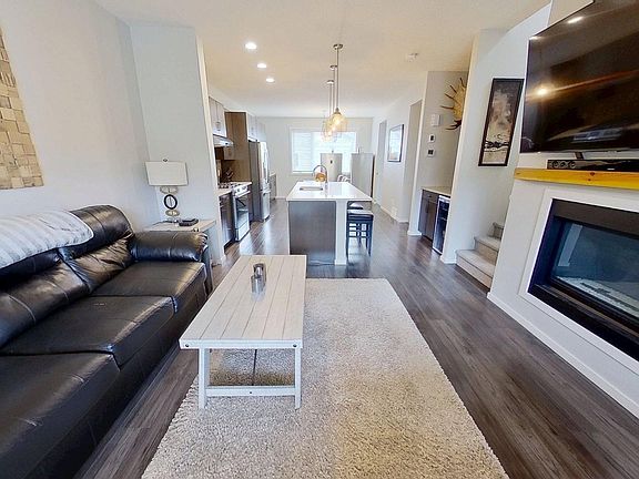Beautiful 1,550 sq ft two-storey home with functional layout and thoughtful features throughout. The main floor offers a living room with gas fireplace, spacious kitchen and dining area, 2-piece bath at the back entrance, and a walk-in closet at the front entry. Upstairs features new carpet, two bedrooms, a small bonus room that could be converted into a third bedroom, and a full bathroom with tub/shower combo, toilet, sink, and shelving. The primary suite includes a walk-in closet with organizer, ensuite with dual sinks, stand-up glass shower, and jetted tub. Basement is unfinished but insulated, with laundry and shelving for storage. Other features include central A/C (installed 3 years ago), deck with built-in BBQ area, plumbed gas line for BBQ and heater, and sunken gas fire table with seating. Detached garage with gas line and back alley access. Landscaped front and back yards with front patio.