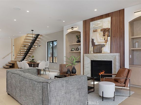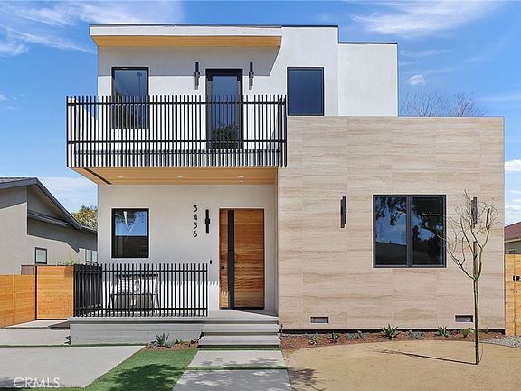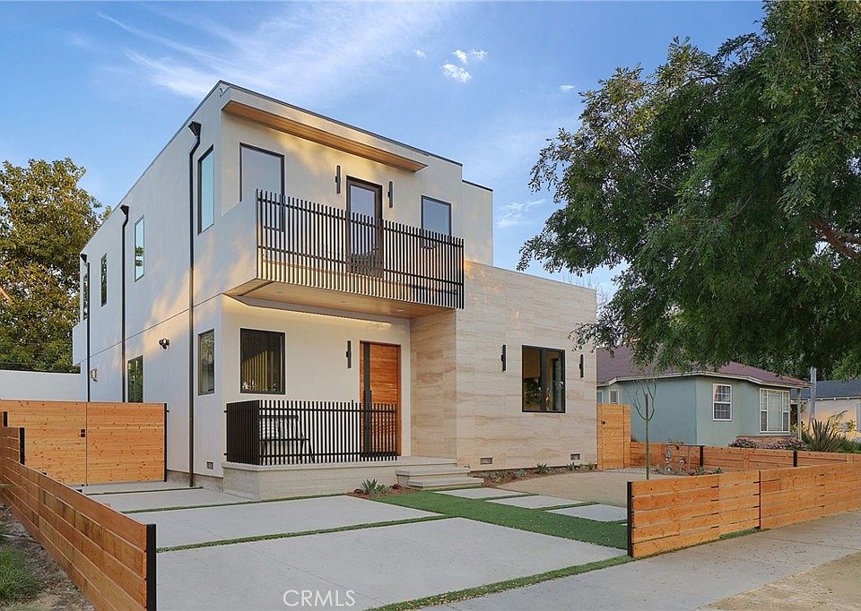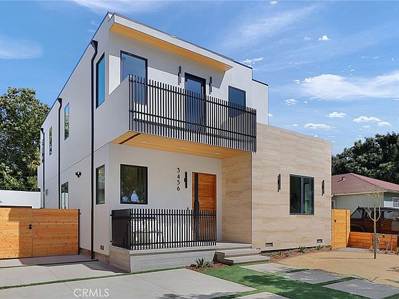 Stunning warm modern architectural home located on a tree lined street within minutes of bustling Downtown Culver City. Right in the heart of Culver City’s Arts District, this newly constructed home checks all of the boxes with luxurious finishes, a detached single story ADU, nearby parks, lively entertainment and great public transportation. This modern marvel captivates as you enter directly into the great room where a sleek floating staircase sits above your grand living space with a custom wood railing and a floor to ceiling Roman Clay backdrop. The great room is an entertainer’s paradise comprising of a separate formal dining space, chef’s kitchen, eat-in nook and family room. The well-appointed kitchen has everything the inner chef in you desires consisting of custom rift white oak cabinetry, quartzite stone counters, walk-in pantry and a spectacular custom fluted island in white oak. Top of the line Thermador appliance package completes the kitchen with a 48” professional range, side by side fridge/freezer with custom white oak panels, micro drawer and separate wine fridge. Cozy up in the family room with a fireplace encased in a custom quartzite mantel and hearth flanked by gorgeous arched insets. Large bifold door directly off your family room allows for the perfect indoor/outdoor living experience where you’ll find a large patio space, oversized outdoor BBQ island and a large grassy play area to entertain. Second level primary suite provides a generous walk-in closet, large shower with soaking tub, toilet room, custom rounded white oak double vanity with a reeded finish and quartzite counter, and a large outdoor balcony with treetop views. The flowing floorplan is beaming with natural light and includes a downstairs en-suite and elegant powder room along with two upstairs junior bedrooms and laundry space. The detached guest house is complete with a separate bed/bath and all of the exquisite finishes found in the main house. This custom-built home is immersed with designer details and fixtures that are sure to impress the most discerning buyer.
