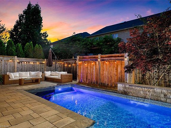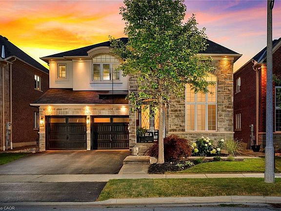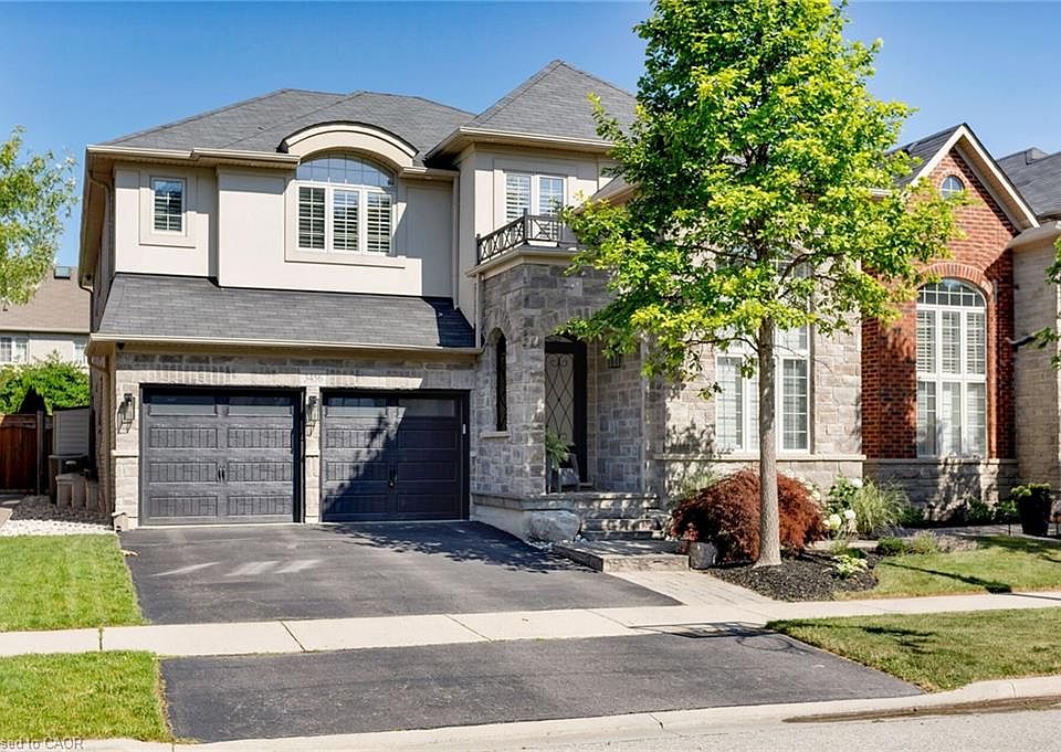 Discover luxury living in this Monarch-built executive home in Oakville’s prestigious Bronte Creek neighbourhood, just steps from trails, Colonel William Woods Park, & Bronte Creek Provincial Park—ideal for hiking, biking, & family adventures. This exceptional Bronte Creek real estate gem sits on a re-landscaped lot with a stone & stucco façade, stone tile walkways, manicured gardens, soffit lighting, & a private backyard oasis featuring a saltwater pool, sheer descent waterfall, & extensive stone patio for outdoor entertaining. Inside, over 5,000 sq. ft. of upgraded living space includes 4+1 bedrooms, 4.5 bathrooms, & a professionally finished basement (2020) with a recreation room, wet bar, glass-enclosed gym, a fifth bedroom, & a modern 3-piece bath. Elegant finishes—wide-plank hardwood floors, crown mouldings, designer tiles, custom cabinetry, custom blinds, California shutters, & stone countertops—are complemented by 9-foot ceilings & expansive windows. The main level offers formal living & dining rooms, a custom kitchen with premium appliances, a dramatic two-storey family room with fireplace, a private office, a dream laundry room & chic powder room. Upstairs features 4 spacious bedrooms & 3 spa-like bathrooms, including a primary retreat with a 5-piece ensuite boasting a lavish soaker tub & separate glass shower. Recent upgrades include 2 updated upstairs bathrooms, new second level laminate floors & baseboards, 100 new pot lights, updated fire stones in the electric fireplace, integrated wall vents, designer feature wall in the dining room, fresh paint, new door hardware, & a Tesla charger added to the garage. Located minutes from top-rated schools, shopping, restaurants, Oakville Trafalgar Hospital, & major highways, this showpiece family home in Bronte Creek offers luxurious living in a prime Oakville location.