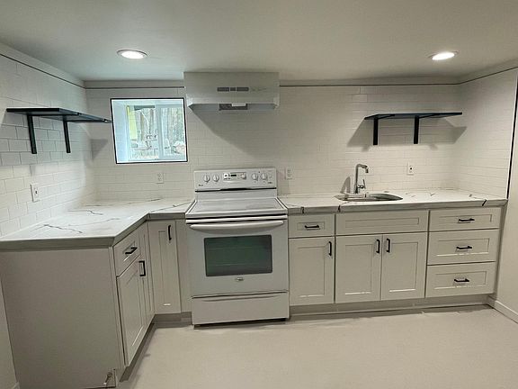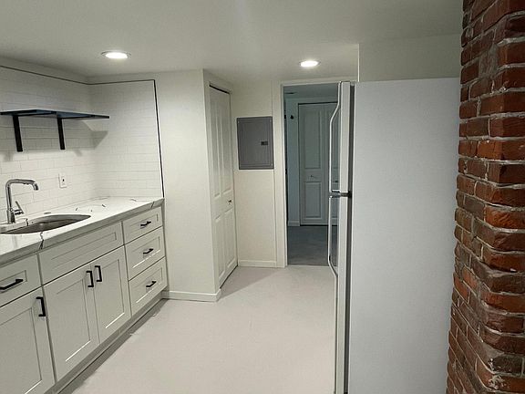 Basement unit under an existing home. Unit has exclusive entrance from street, a private deck and a shared back yard. Stairs down to a utility room and entrance into the apartment. The apartment has a complete kitchen with concrete countertops and garbage disposal with washer/dryer in unit. Curbless walk in shower and linen closet. Bedroom has egress window and spacious closet. Living/dining adjacent to kitchen, lots of lighting and lots of other features in this modern apartment! Ceiling Height - about 6' 8" $100 monthly utility fee includes water, sewer, garbage and gas. Power is separately metered and responsibility of the tenant