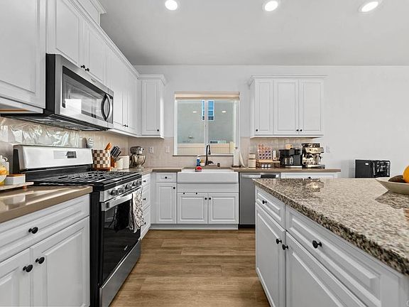 Welcome to this beautifully maintained 4-bedroom, 2-bathroom home in a desirable neighborhood. A converted den with French doors offers a versatile space for a home office, guest room, or potential bedroom! The open floor plan features granite countertops, a spacious kitchen with walk-in pantry, and a light-filled master suite with a walk-in closet. Eco-friendly solar panels with battery backup deliver year-round energy savings. The expansive backyard with mountain views is ideal for entertaining, gardening, or play. Conveniently located just 2 minutes to a local park and 5 minutes to schools, including a K–12 charter, this home blends comfort, convenience, and community charm!