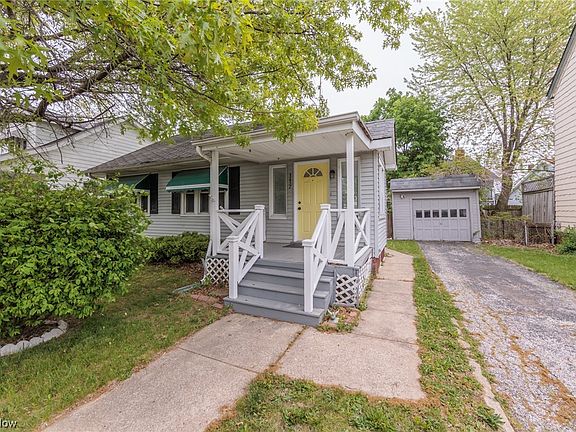 This lovely, Bungalow home includes a welcoming large covered front porch, sweet awnings and a cheery front door. Heavy wood molding and neutral colors run throughout. The kitchen has white cabinetry, a ceiling fan and a double stainless steel sink. Additional storage can be found in the full basement with a workshop area and large utility sink. Fully fenced back yard with a rear entrance. The detached one car garage in the backyard is convenient for maintaining the yard. Schedule your private showing today before it's gone!