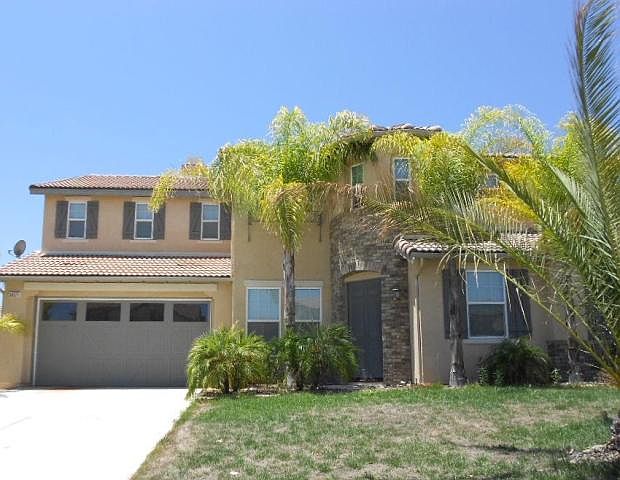 Beautiful Whispering Heights French Valley executive home. 5 bedrooms, 4.5 bathrooms plus a bonus loft upstairs. Magnificent entrance features separate formal living room w/ vaulted ceilings, separate formal dining room, main floor bedroom with walk in closet and its own en suite full bathroom. Separate family room with fireplace, main floor powder room and huge chef's kitchen featuring granite counters, stainless steel appliances, center island & breakfast bar, breakfast nook, built in desk & upgraded glass front cabinets. New paint, carpet & tile flooring plus upgraded dimmer switches and surround sound speakers built in throughout entire home. Master bedroom has spacious retreat, upgraded ceiling fan, private master bath with dual sinks, separate shower, dual walk in closets and separate jetted Jacuzzi tub. Deck off master with beautiful view of mountains and privacy from greenbelt with no rear neighbor. Covered concrete patio in rear yard plus sprinklers, 3 car tandem garage w/ epoxy floors and much more!