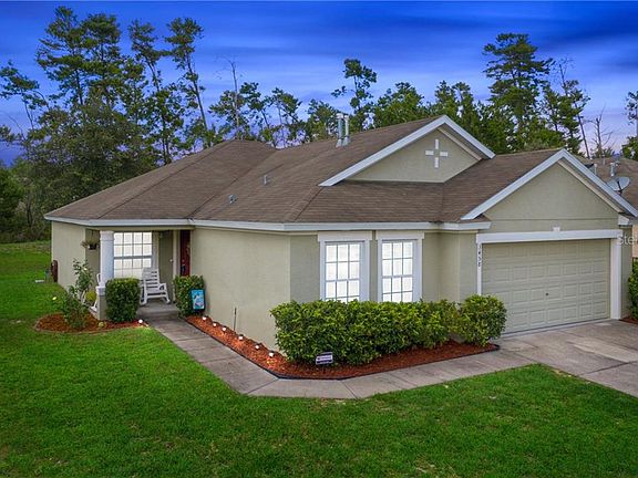 Don't miss the chance to make this CHARMING DELTONA home yours. The scenic landscaping draws you into this beautifully maintained home! Entering the home you are greeted by the formal dining room highlighted by two large windows filling the area with stunning natural light year round. The dining room has two pass through windows into the family room creating an open and airy feel! The large kitchen is perfect for the budding home chef and novices alike! You have two pantries one of which is a WALK IN along with ample cabinet and counter space! The peninsula boasts a breakfast bar and looks over into both your breakfast nook and family room! The VAULTED CEILINGS and the sliding glass doors amplify the already large room and the OPEN FLOOR PLAN is perfect for entertaining a crowd! The party can seamlessly transition outdoors! Your new backyard backs a conservation adding privacy to the space. The SPLIT FLOOR PLAN tucks the master suit away at the back of the home. The master bath has a large garden tub perfect for unwinding after a long day and features a sizeable WALK IN CLOSET! At the front of the home you will find your two guest rooms both of which have large reach in closet along with the guest bathroom. This home has its own laundry room separate from the garage! The Arbor Ridge Community is located near Deltona High School and provides both a community POOL AND PARK!