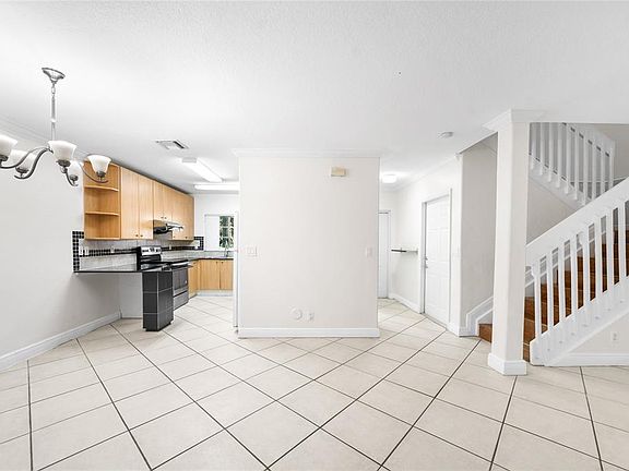 Corner-lot homeFull laundry roomKitchen with granite countertopsTile and laminate flooring