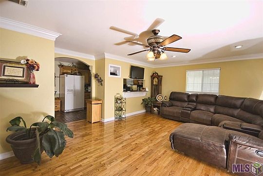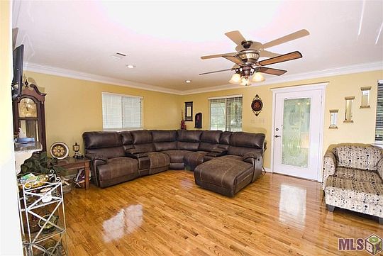 4BR/2 1/2BA CUSTOM BUILT HOME ON .50 ACRES- AMENITIES AND STORAGE SPACE GALORE- NO WASTED SPACE HERE. COVERED WOOD PORCH AT BACK OF HOME MEASURING 12X44 IS WHEELCHAIR ACCESSIBLE AS IS MOST OF THE HOME. KITCHEN HAS BRICK PAVED FLOORS, GRANITE COUNTER TOPS AND BACKSPLASH AND CUSTOM ASH CABINETS. CUSTOM PANTRY WITH ALL THE BELLS AND WHISTLE. LIVINGROOM HAS DOUBLE CROWN AND RED OAK HARDWOOD FLOORS WITH SUNKEN BOOKCASES ON EITHER SIDE OF THE GAS FIREPLACE. MASTER BEDROOM HAS WOOD LAMINATE FLOORS WITH LOUNGE AREA AND ENTERTAINMENT SYSTEM OVER THE FIREPLACE TO STAY AND DUAL CLOSETS ON EITHER SIDE. SELLER IS LEAVING THE CUSTOM BUILT KINGSIZE BED AND NIGHTSTANDS THAT MATCH THE WOOD WORK IN THE ROOM. MASTER BATH HAS DOUBLE CROWN, WHIRLPOOL TUB AND HUGE SEPARATE SHOWER. CEILING FANS ARE IN EVERY ROOM. UPSTAIRS ARE 2 BEDROOMS, A HALF BATH AND ENOUGH DECKED FLOOR SPACE IN THE ATTIC TO EQUAL THE SIZE OF A BEDROOM. ATTIC IS HEATED AND COOLED TO...FINISH OUT FOR A 5TH BEDROOM. ALL THIS AT A GREAT PRICE PLUS LIVE OAK SCHOOLS.