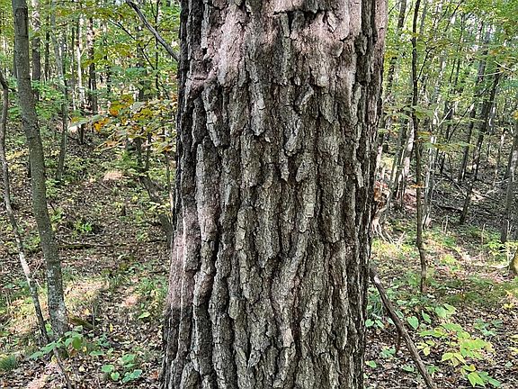 Mixed hardwood forest, mostly oak & maple. Follow the mowed trail to one of the excellent building sites. Address is estimated, Polk County will issue actual address when septic permit is issued.