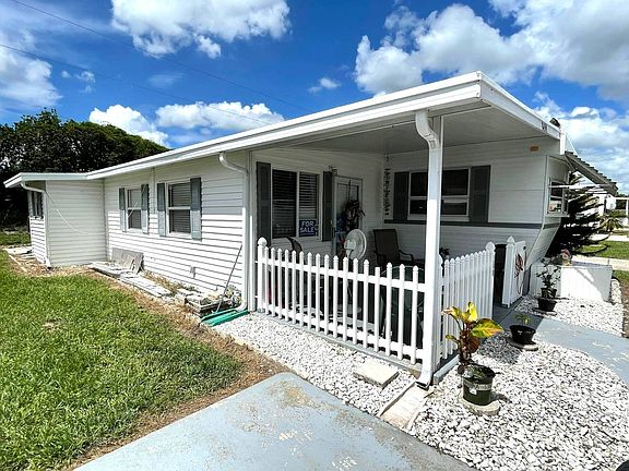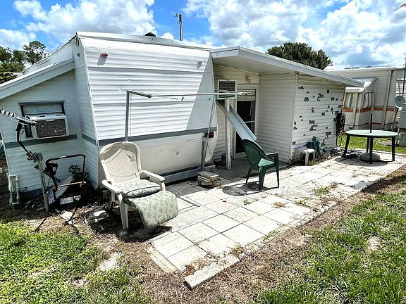 This is a one bedroom one bath with a Florida room. The Florida room is way oversized on this home and is insulated with glass windows. It has carpet with 3 a/c's to keep everything cool on those hot Florida days. There is a storage room in the back of the Florida room with a washer, with its own hot water, and dryer. In the main home, it has a front kitchen with newly painted cabinets with new hardware and flooring. Tons of storage. The main home also has two tip out for extra space in the dining area and bedroom. The bath has also been updated with newer paint and flooring. This home has a metal roof and paved driveway. It also has super cozy front covered patio that is large enough for entertaining and if there is a crowd, the back patio is larger and backs up to the neighboring orange groves. Won't last long. Call today!