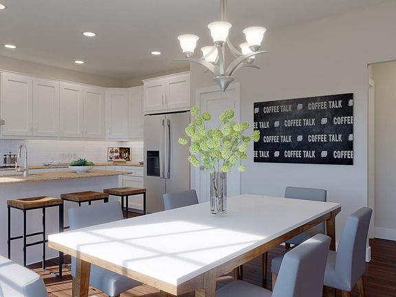 The Dunlap's welcoming covered entry has plenty of curb appeal, leading to the large foyer with charming views of the expansive great room beyond. The well-equipped kitchen overlooks a sunny casual dining area, and is designed with a large center island with breakfast bar, plenty of counter and cabinet space, and sizable pantry. The secluded primary bedroom suite is highlighted by a generous walk-in closet and deluxe primary bath with dual-sink vanity and luxe glass-enclosed shower. Secondary bedrooms feature spacious closets and shared full hall bath. Additional highlights include a bright flex space off the foyer, and convenient laundry room on the second floor.
