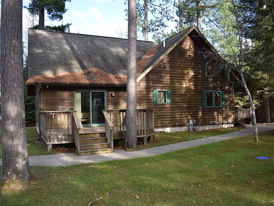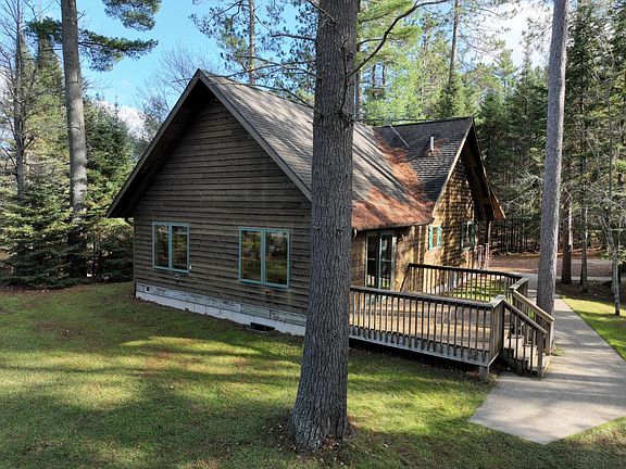 A tremendous lake home is found just 8 miles northwest of Eagle River on the shores of Upper Buckatabon Lake. Tucked behind gigantic pines, this absolute gem provides more than most Northern Wisconsin lake properties could ever provide. As you walk down the path to the permanent dock, pay particular attention to the wildlife that call this property home. The pictures of hunting successes tell the story of how many deer are found here. You can expect to see grouse and turkeys, woodcock in the fall and bears also frequent this property, just as they do most large tracts up north. When the fall migration is in full swing, enjoy sitting in your blind right at the end of the dock as ducks and geese find their way to your quiet bay, certainly decoys will help slow them down. The 4 bedroom/3 bathroom home was built in 2004 and is extremely well designed. Cathedral and vaulted ceilings on the upper level allow you to decorate as needed when more wall space is needed, maybe you have some mounts that need to be displayed. There are three decks on the home. A covered deck leads to the entrance near the kitchen, another is found on the front of the home, and a custom deck is hidden and located off the back of the home. Comfort is found throughout this home. When you find your way to the finished lower level, you will be impressed by a custom built bar room and entertainment area. A bedroom, bath, and bar/storage room are located on the lower level, along with a large furnace room. Open the sliding door to find your way to the lower level patio and firepit, conveniently located just outside. A gas fireplace simply adds to the comfort found here and the location of the firepit, found just outside near the lower level entertainment area, will give you and your guests lots of options to spend time. Many miles of ATV and snowmobile trails are found within a short distance of your new home and if you are into hunting, the property has lots of options. Stands are already in place for deer hunting and if you enjoy pass shooting for waterfowl, just walk to the end of the dock, the inlet that leads to the main body of the lake is a quiet water bay perfect for hunting waterfowl. With almost 900 acres of water, when the fall flight begins, you can only imagine how much fun a good spread of decoys can provide. The current owner is an avid outdoorsman, enjoying everything that the property has to offer. If you would enjoy having a bit larger area, an additional 12.71 acres are available to the buyer of the home. (The seller will provide a smaller piece of the 12.71 acres if the buyer decides they do not want it all.) Upper Buckatabon Lake has an area of 493 acres and depth of 47 feet. It holds strong numbers of Musky, Largemouth, Smallmouth, Northern Pike, Walleye and Panfish. And it is attached to Lower Buckatabon Lake adds another 378 acres to enjoy. This is vacation country, hunting country and a peaceful part of Northern Wisconsin. Take the time to look the pictures over just once more, then give us a call. For the most accurate description of what this property can provide for you and your family, be sure to call, the listing agents. We know great property when we see it and this one is outstanding. Call today.