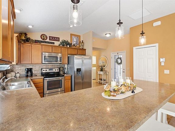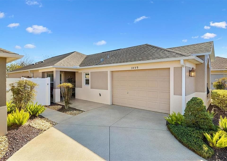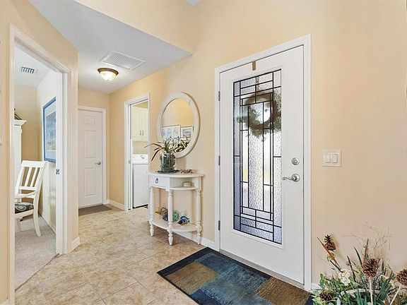 Beautiful turn-key ( personal items excluded ) Courtyard Villa. Move in ready! Highly sought after Marianna Villas in The Village of Collier. Close to Brownwood Town Square with shopping, restaurants and nightly entertainment. Walk up the epoxy driveway to the cozy front porch. Enter through the upgraded leaded glass front door w/sliding screen for cooler nights. Notice the large kitchen with stainless steel appliances. Large counter top with barstools for extra seating.Kitchen dining room area with sliding glass door wall lets in plenty of natural lighting. High ceilings adds an open airy feeling throughout. Large primary bedroom en-suite bathroom with walk in closet, eye catching tray ceiling. A door-wall leads to the upgraded ( 2025 ) glass enclosure lanai with UV extra fine screening plus tinted glass windows adding extra value and living area to enjoy. Convenient Split floor plan is great for privacy when guests visit with two guest bedrooms and guest bathroom separated from the primary bedroom. Indoor laundry with utility sink are a big plus. New Water filtration system to be installed. Garage has epoxy floors. Start your Villages lifestyle. Very social neighborhood with a men’s golf league, mixed golfing, women’s golf get togethers every week plus Thirsty Thursdays every other week. Lots of fun and new friends to meet! Call for a private showing.