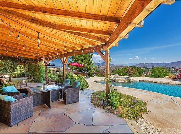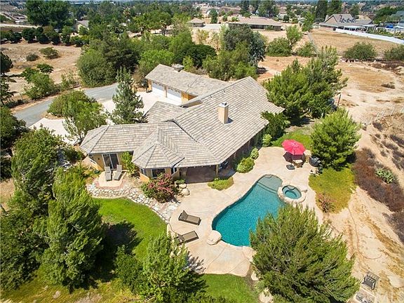 This is one of those rare opportunities in the Temecula Wine Country where you can find a perfectly flat fenced 2.3 acres, which is perched perfectly to allow for staggering panoramic views. The custom built single story home has a much desired great room design, with high vaulted ceilings, a large open kitchen and plenty of windows to allow natural light and views of the pool and the valley below. The kitchen has abundant storage,granite counters and stainless steel appliances. The master bathroom has dual vanities, a large walk in shower, soaking tub, and a closet that could be another bedroom. There are two additional bedrooms, and a large guest area that functions as a bedroom without a closet. There is a very large laundry room/service porch adjacent to the 4 car garage. The rear porch and patio area is perfect for entertaining large parties. This beamed and cover porch overlooks the custom pool and spa and BBQ area. This property is truly perfect for just about any discerning buyer looking for it all.