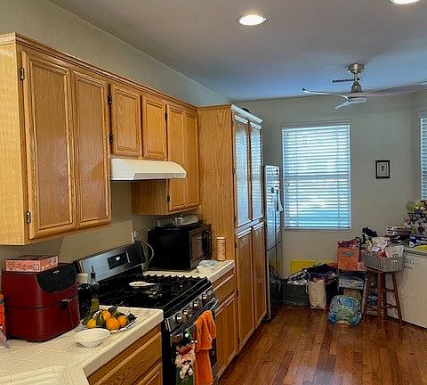 This property is a highly coveted single story home in the desirable Chapman Heights neighborhood in Yucaipa. This single family home has four bedrooms and two full bathrooms. It has an open layout that connects the kitchen, dining area, and large family room complete with a cozy gas fireplace. The main hallway opens up to the first bedroom with double doors that can be used for a different purpose - an office, formal dining room, den, or separate entertainment area. There are two separate bedrooms, each with a walk-in closet. There is a laundry room and a full bathroom with a double sink vanity. The master suite at the end of the hall is private and has an en suite bathroom with a tub and a separate shower, double sink vanity, and a large walk-in closet. Additional features include solid wood floors in main parts of the house, cetral air conditioning and heating, solar panels, 2 car garage, and automatic sprinkler system. The house has easy access to the freeway and in close to the shopping and downtown area. It is walking distance to CECA and the Yucaipa Regional Park.
