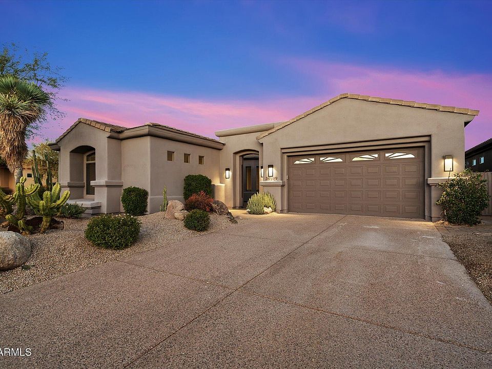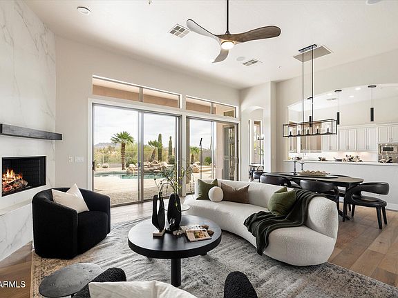 Remodeled and STUNNING located in the gated section of the golf course community of Legend Trail, set on a remarkable lot that backs the PRESERVE, ensuring you these views forever! Featuring 2 bedrooms plus a den/office and 2.5 baths in the main home, plus an additional bedroom and bath in the courtyard casita, this property offers ample space for family and guests. The primary bedroom boasts a huge shower and a stand-alone tub, along with a large walk-in closet. The great room floor plan showcases a beautiful fireplace and a gourmet kitchen equipped with Wolf/Subzero appliances. Enjoy the privacy of a gated courtyard and relax in the backyard oasis, which includes a pool, spa, BBQ area, and firepit and VIEWS FOREVER. The attention to detail in this thoughtful remodel make it truly