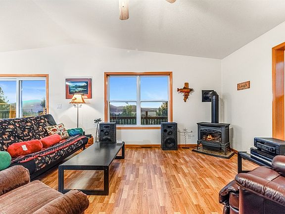 This charming fishing or vacation cabin is located in the most idyllic setting. Up the hill at the end of Bonus Gulch Way there is absolutely nothing to impede the most amazing views ever. The property backs up to hundreds of thousands of acres of National Forest. You will have massive mountain and valley views and you can see picturesque Tarryall reservoir from the back deck. The single level home has two roomy bedrooms, a full bath, a great room, a well designed kitchen with an island for extra seating, a cozy propane fireplace, and a clean, dry crawl space for extra storage. The hardie board siding adds durability and gives the home a cute cabin appeal. The five acre flag lot is covered in mature Pine and Aspen, perfectly private and serene. You will want to be here all the time. Owning a home in Lost Park Ranch affords you membership in the Tarryall Fishing Club. Members have exclusive rights to over 10 miles of river fishing and access to three stocked ponds. This is an angler's paradise. Presently, the home is powered by solar and propane and includes 2 generators and a complete solar system in the solar shed. But, with power right at the lot line, it would be easy to pull in power and turn this into a full time residence or short term rental. This home can be anything you want.