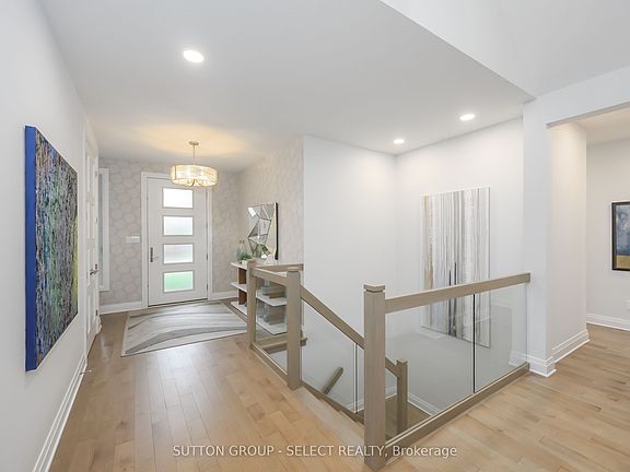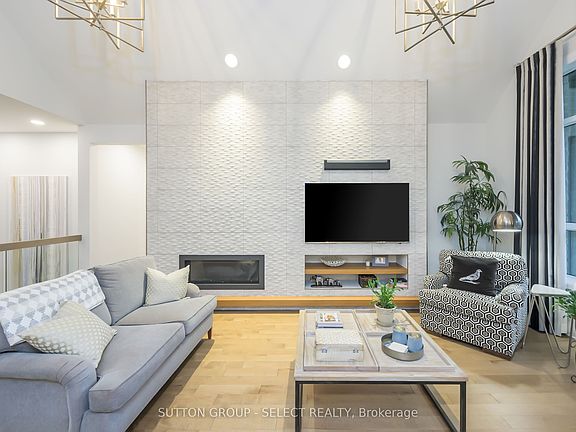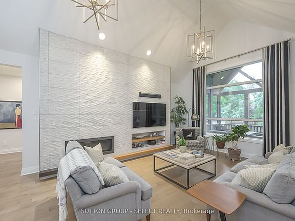 2250 sq. ft. of bespoke design wrapped in natural stone, warm woods, and thoughtful contemporary detailing. From the moment you step inside, the single-storey layout unfolds with clean lines, layered textures, and intentional flow. The great room is anchored by a 15-ft vaulted ceiling and a striking porcelain media wall with an integrated linear fireplace. Quarter-sawn hardwood runs throughout the main living spaces, grounding the palette in warmth and texture. In the kitchen, ceiling-height cabinetry blends soft grey flat panels with the combed grain of Rift-sawn White Oak. Quartz surfaces, integrated appliances, a sculptural 6-seat curved island, and hidden pantry access all contribute to a space that's both functional and refined. The adjacent dining area leads to a Muskoka room that invites relaxed indoor-outdoor living. The primary suite features oversized six-pane windows that draw in natural light. A spa-style 5-piece ensuite enjoys double sinks, triple vanities, heated floors & a deep soaker tub wrapped in textured porcelain that continues across the wall to envelope the curb-less, seated, glass shower. Two additional bedrooms include generous closets and share a beautifully finished main bath. The powder room introduces a tactile design moment with its organic cork wall treatment. A custom switchback staircase wood-framed and glass-paneled leads to the finished lower level where lookout windows bring in plenty of natural light. 1,656 sq. ft. of additional living space includes a central games room, inviting family room, office with private outdoor entry (ideal for a home business), guest bedroom, gym/flex space, and a 2-piece bath pre-framed and plumbed for shower option. Outside, the backyard is framed by mature trees and offers multiple areas for dining, lounging, and quiet retreat created through designer hardscaping. Set in the Meadowlands of Sunningdale, close to golf, forested trails, shopping, Western University, and University Hospital.
