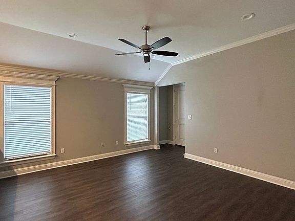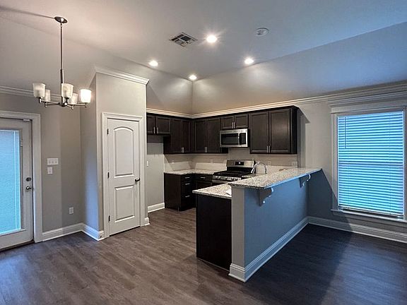 Open floor plan. Kitchen has stainless steel appliances. (No refrigerator). Garden tub in master bath.